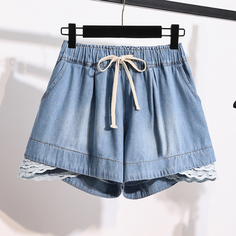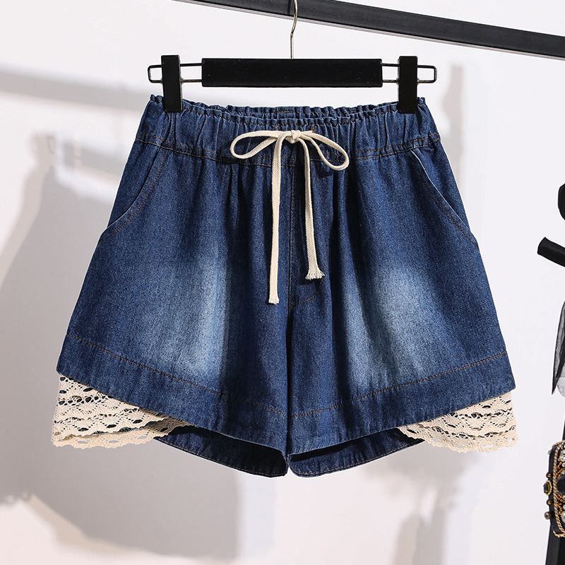 Lace lace elastic waisted denim shorts