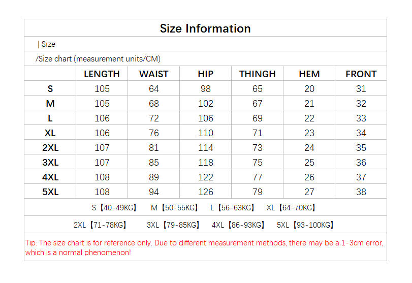 S, M, L, XL, 2XL, 3XL, 4XL, 5XL