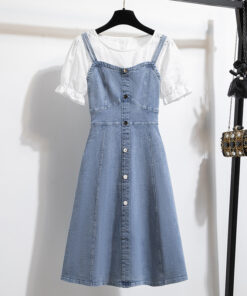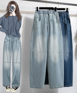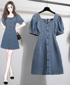 High waisted A-line hip hugging skirt, women’s denim skirt