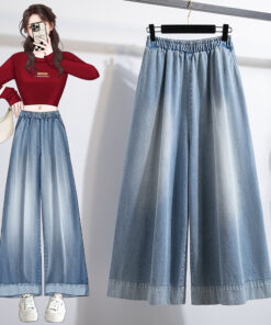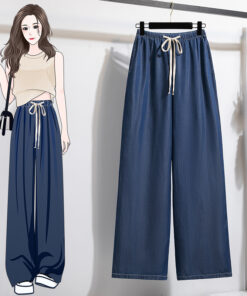 High end loose casual straight leg wide leg pants Tencel pants for women