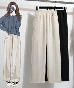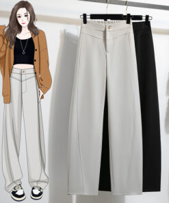 Plus-size Straight-leg Loose-fit Suit-style Floor-length Pants